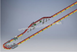 Băng tải xích sàn ray V với cách bố trí ray ngược, xích, bộ chuyền động có cấu tạo đặc biệt cho phép lắp ray ngược chạy trên mặt nền. Với khả năng tải lớn băng tải loại này được sử dụng nhiều trong các nhà máy sản xuất ô tô, xe máy, lắp ráp linh kiện, vận chuyển hàng hóa vào kho, dây chuyền sơn, sấy sản phẩm…