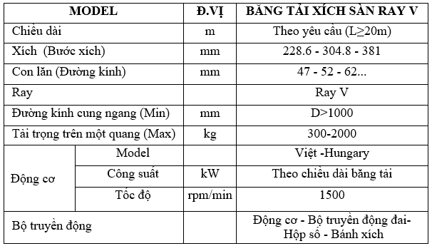Băng tải xích sàn ray V