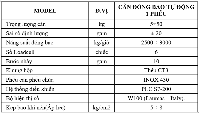Cân đóng bao chè 1 phễu cân định lượng chính xác, cho năng suất cao, chi phí nhân công vận hành và bảo trì thấp. Góc thoát chè được tối ưu, cân có khả năng đóng được nhiều dạng chè khác nhau như OPA, OP ngoẵng… Đặc biệt trong quá trình cân không làm dập nát chè.